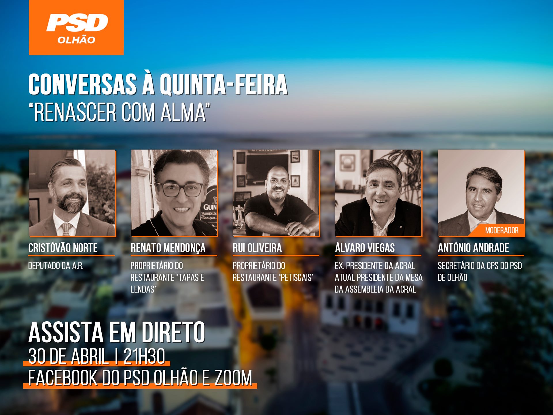 The videoconference will be broadcast live on PSD Olhão’s Facebook or can be accessed on the Zoom platform through the following link: https://zoom.us/j/94121220119